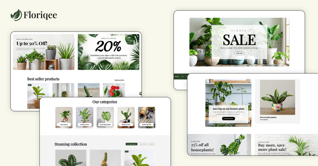 Floriqee – House Plants and Gardening Shopify Theme, a sleek, modern, and feature-rich solution crafted specifically for plant sellers, gardening stores, nurseries, landscapers, and sustainable lifestyle brands.